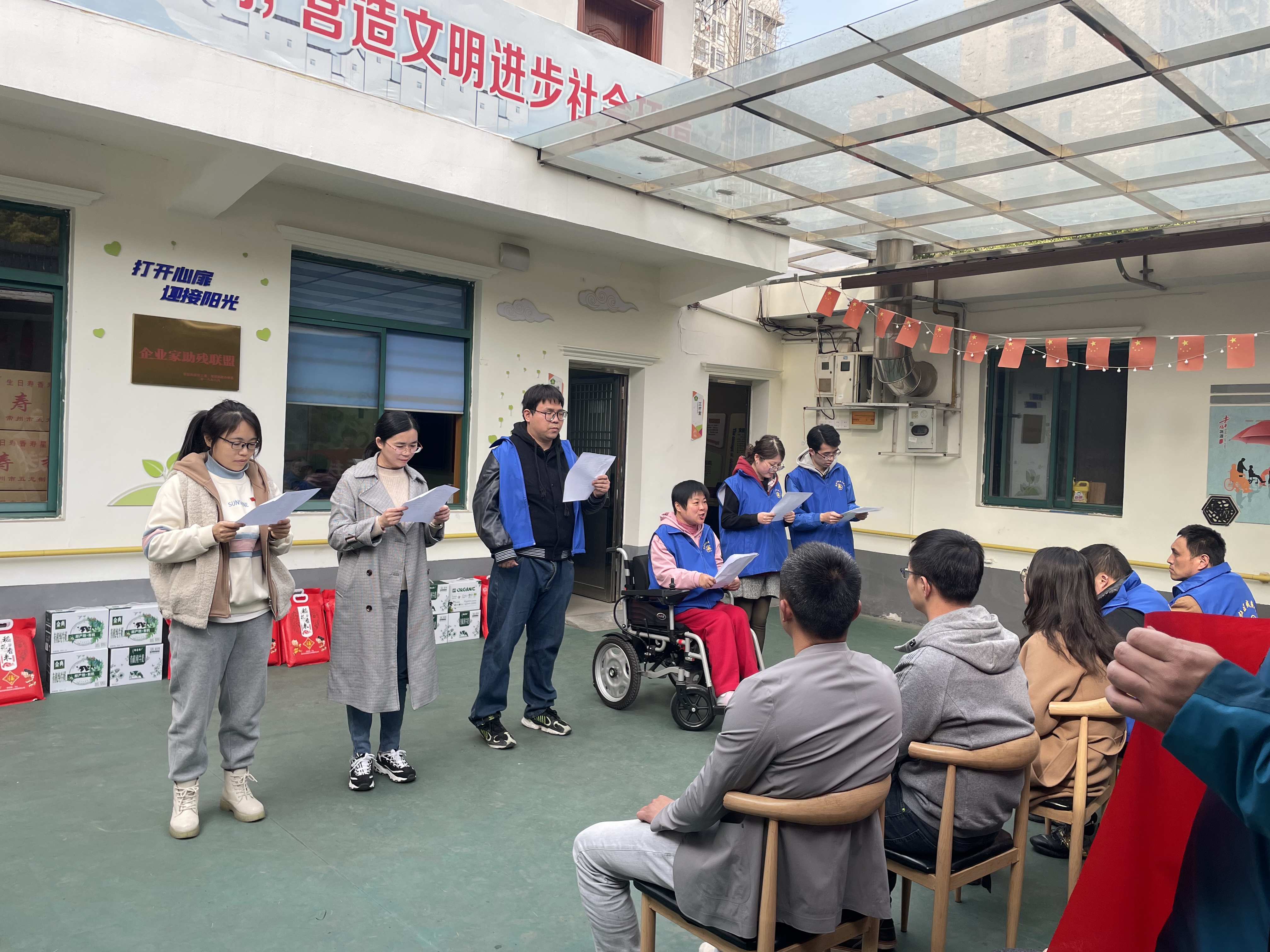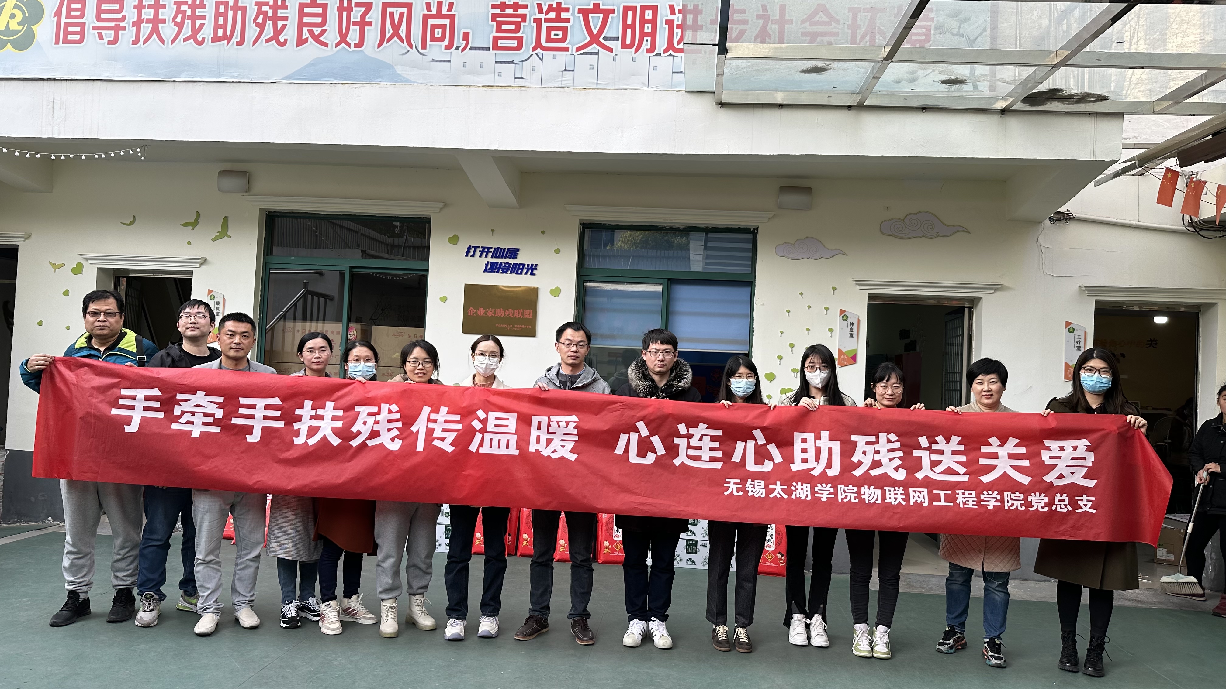 情暖三月学雷锋,党员先锋在行动。3月27日下午,物联网工程学院教工党支部和教师党支部,到荣巷街道桃源社区的残疾人之家山百合关爱促进中心,开展“手牵手扶残传温暖,心连心助残送关爱”主题党日活动。