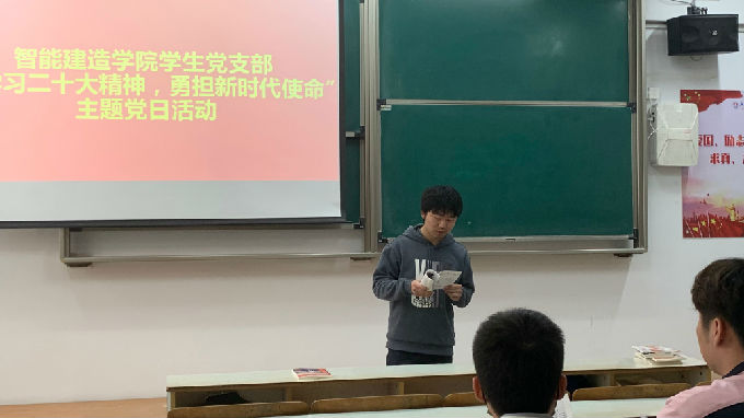 新思想引领新时代,新使命开启新征程。为进一步推动学习党的二十大精神走深走实,积极响应党中央“深刻领悟二十大精神,争做时代新青年”的号召。3月23日下午,无锡太湖学院智能建造学院学生党支部于7号楼120教室开展“学习二十大精神,勇担新时代使命”的主题党日活动。