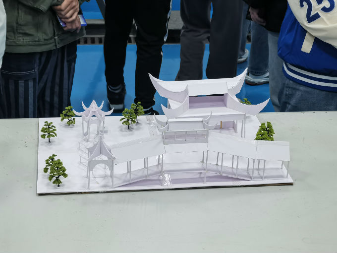 比赛开始前,同学们拓宽自己的思维,发挥自己的创造力,从材料选材、结构构思等方面都认真用心地做了相应的功课,他们将生活之美融于艺术,经过一周的精心制作,11月18日,他们将独具匠心的建筑模型作品带到比赛现场进行评比。