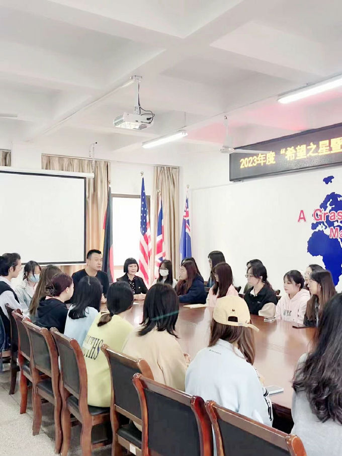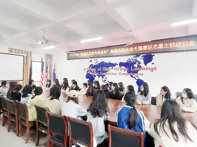 外国语学院于11月3号下午在6号楼辅楼211会议室召开了2023年度“希望之星暨希语盛典”英语风采大会无锡赛区志愿主持培训会。参加会议的有全体志愿者。会议由外国语学院院长肖辉教授、外国语学院党总支副书记俞昊波主持,出席本次大会并为同学们做了培训。