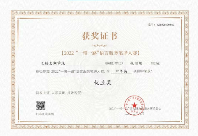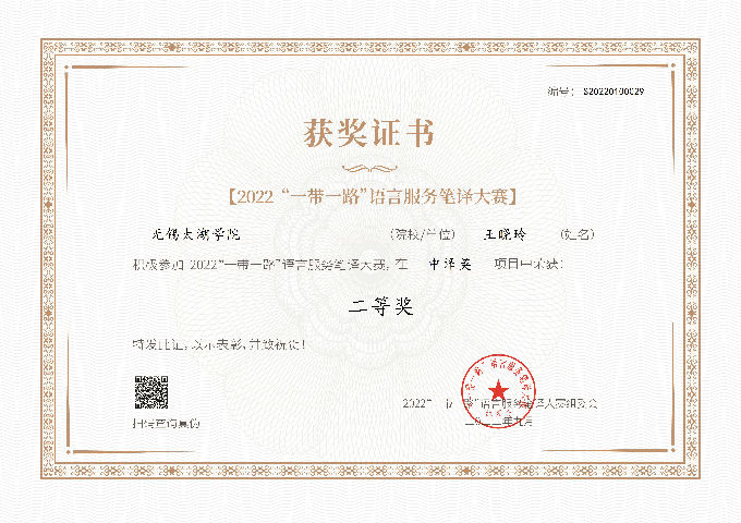 语言架起了一座跨越文化沟壑的桥梁,承载着文化交流与传播的重担。2022年“一带一路”语言服务笔译大赛顺利举行并圆满落下帷幕。我校外国语学院的学子们踊跃报名,积极备赛,并在比赛取得了优异的成绩!现将本次比赛获奖名单公布如下: