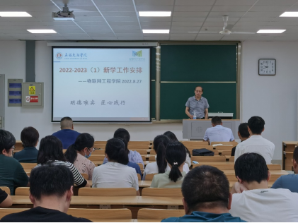 8月27日上午9点30分,物联网工程学院全体教职工在工科实验大楼A403召开了2022-2023学年第一学期全院教职工大会,学院院长惠晶、党总支副书记沈峰以及学院全体教职工参加此次会议,沈峰书记主持该次会议。
