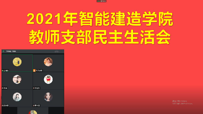 2022年3月24日下午,智能建造学院教师党支部通过腾讯会议召开2021年度民主生活会,支部全体党员参加会议,会议由教师支部书记江雨辰主持。