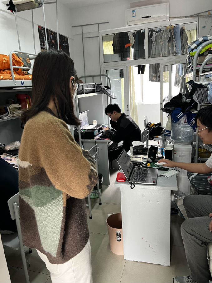 为了解智能建造学院21级在校学生线上学习和校园生活情况,3月30日下午,学院党总支副书记余波与21级辅导员戎婷竹老师前往21级男生宿舍进行走访。