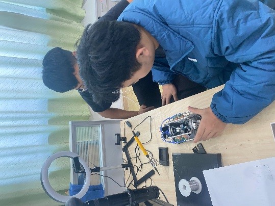 参赛作品“V型电磁铁发动机”的作者是来自物联网2003的葛振羽、刘正昊、徐恬同学,作品“磁悬浮太阳能电动机”的作者是来自物联网2003的高瑞凡、张儒林同学,作品“带屏蔽硅片测试探针台”的作者是来自物联网1901的李三星、陈显法同学和物联网1904的唐玲珑同学。为了此次竞赛,参赛的同学认真准备了5个月,并且在暑假期间,每周也都通过线上会议的方式,进行参赛作品的制作改进以及相关问题的讨论研究。每一步的完成都离不开大家的辛勤努力和大家的坚持。同时学校的指导老师顾吉、尹嵘也对几个小组一直提供了指导和帮助。也正是在学校的支持下,老师的领导下,同学的不懈努力下,才交出这一次满意的答卷。希望同学能够继续努力,再创佳绩。