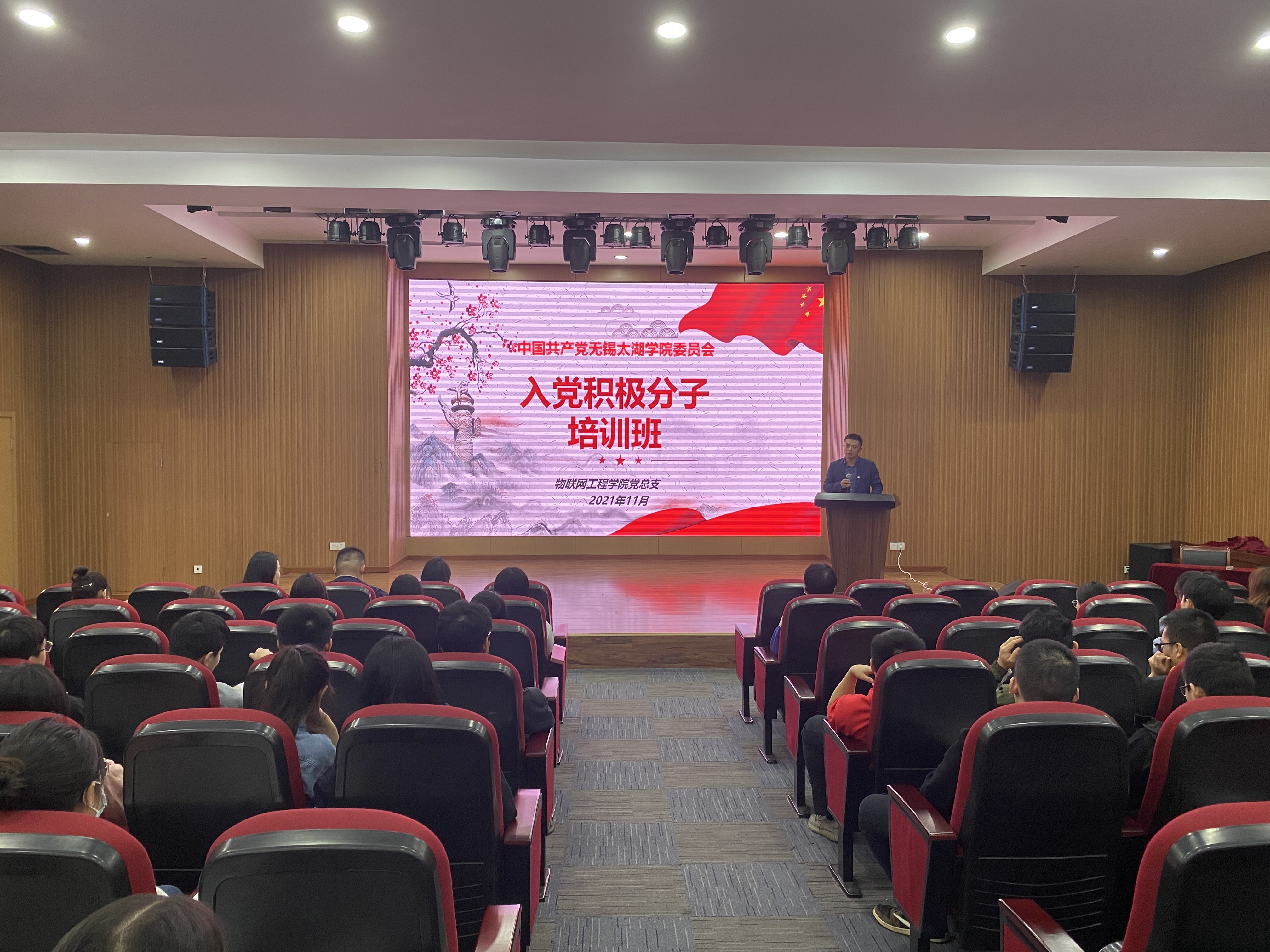 2021年11月1日,物联网工程学院在大学生活动中心报告厅举行了2021下半年入党积极分子培训班开班仪式。学院党总支副书记沈峰、马克思主义学院曹喆老师、学生第一党支部书记王莺老师、学生第二党支部书记储万煜老师、学生第三党支部书记殷丽旦老师、兼职组织员胡玉婷老师出席会议。学院本期入党积极分子培训班137名学员参加会议。会议由开班仪式与专题党课两个部分组成。
