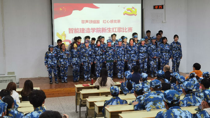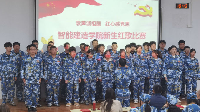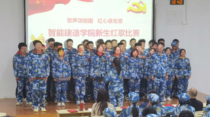 重温红色经典,追忆百年历史。为热烈庆祝建党100周年、也进一步增强军训期间新生更好的团结。智能建造学院团总支于10月21日晚开展“歌声颂祖国,红心感党恩”新生红歌赛,抒发爱党爱国情怀,为党唱响百岁“生日歌”。智能建造学院副院长张军、党总支副书记余波、团总支书记戎婷竹以及全体新生参加了本次活动。