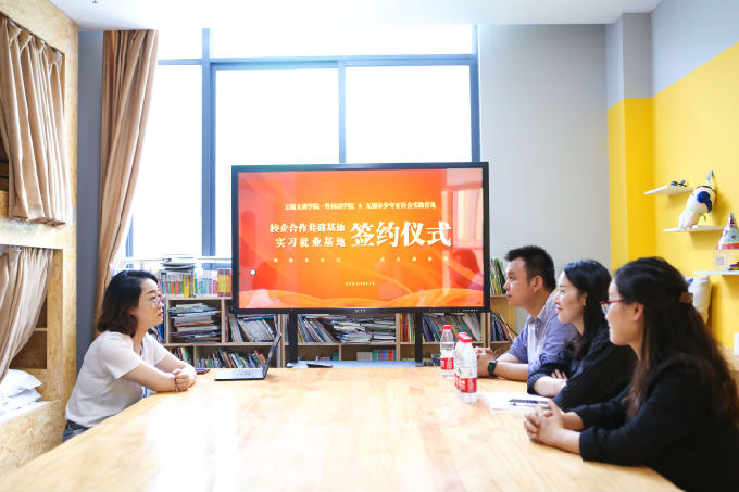 无锡市少年宫社会实践营地致力于打造国内领先的青少年健康教育全面成长营地,建立家庭—学校—社会的完整全面素质教育生态圈,是无锡市首家践行积极教育的实践营地。通过校企合作平台,无锡太湖学院外国语学院希望能够为其实现对口人才输送,为实践营地未来的发展与创新增添不一样的活力与精彩,外国语学院学子也能够有机会联手无锡市少年宫社会实践基地共同培养有幸福力、面向未来的的全面发展的社会主义事业接班人。