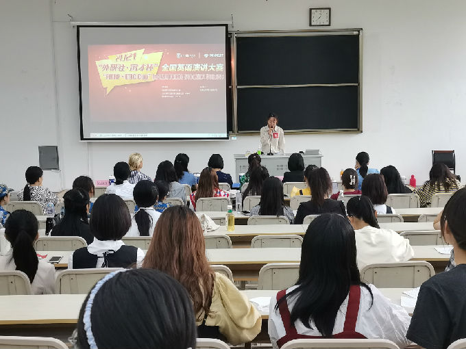 由外语教学与研究出版社、北京外研在线数字科技有限公司和中国外语测评中心联合主办,无锡太湖学院外国语学院承办的2021“外研社·国才杯”全国英语演讲大赛于10月14日下午在六号楼121教室顺利开展。外国语学院院长肖辉、副院长吴旻昊、英语系副主任邹璆、商务英语系副主任马海滢、骨干教师王晋、外教Mariana担任评委。