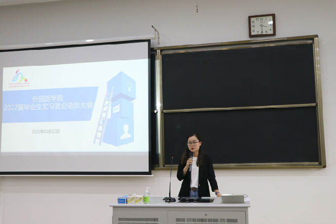 10月12日下午,外国语学院于6号楼121教室顺利召开“外国语学院2022届毕业生实习就业动员大会”。