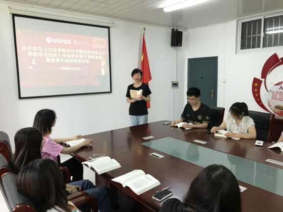 6月22日,商学院教职工党支部开展“《习近平新时代中国特色社会主义思想学习问答》-着力培养忠诚干净担当的高素质干部”的主题教育专题学习,各教师党员认真学习习近平总书记在全国组织工作会议上重要讲话,围绕学习好干部焦裕禄的光辉事迹,坚守立德树人初心进行了热烈讨论。