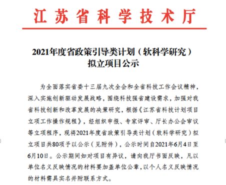 2021年6月11日,江苏省政策引导类项目(软科学研究)拟立项目完成公示。今年该省部级课题共立项80项,其中我校会计学院教师汪小龙申报的课题“双循环背景下半导体产业转型路径、方法及政策研究”喜获立项。