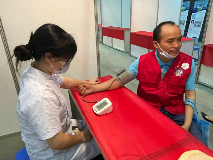 在科普急救知识之后,两位同学利用血压计为参加展览的人们志愿测量血压,检查人们的身体状况以及提醒大家平时要注意自己的身体情况,最好做到每日测量血压。