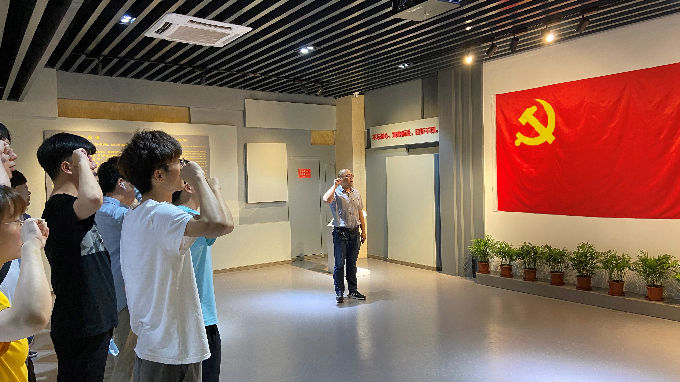 在参观完纪念馆之后,全体党员在余波书记的带领之下,面向党旗进行了庄重宣誓,重温了入党誓词:我志愿加入中国共产党,拥护党的纲领,遵守党的章程,履行党员义务,执行党的决定,严守党的纪律,保守党的秘密,对党忠诚,积极工作,为共产主义奋斗终身,随时准备为党和人民牺牲一切,永不叛党。