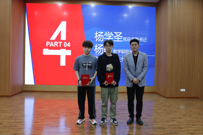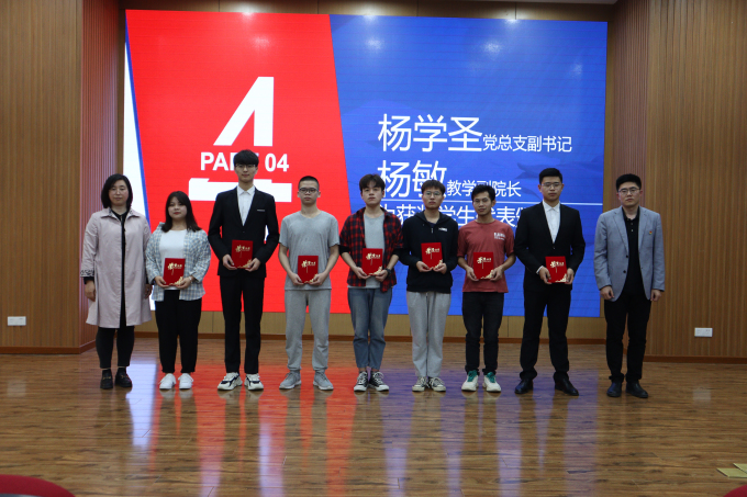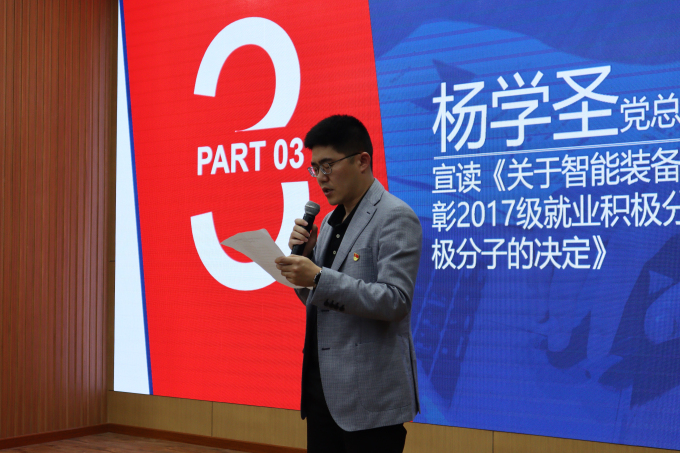 党总支副书记杨学圣宣读《关于智能装备工程学院表彰2017级就业积极分子、创业积极分子的决定》,并由教学副院长杨敏与党总支副书记杨学圣为受表彰同学颁奖。