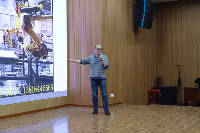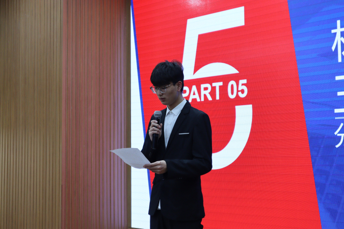 大会最后,由标杆合作企业晋拓集团林顺安总监及埃姆维公司张晔总经理进行宣讲,通过宣传片与PPT介绍企业概况、实习环境、薪资福利等,使得学生更加了解实习企业,并且表达对学生的欢迎,对于优秀人才的尊重,以及与学院合作的决心。