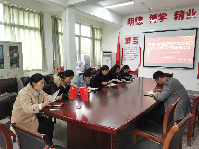 为深入学习贯彻习近平新时代中国特色社会主义思想,全面贯彻党的十九大和十九届三中、四中、五中全会精神,为加强健康与护理学院基层党支部建设,落实全面从严治党主体责任,有效激发党支部书记工作的积极性、主动性、创造性,按照校党委《关于开展无锡太湖学院党组织书记履行党建工作责任述职工作的通知》的通知要求,结合疫情防控工作和学院工作实际,12月18日下午2点,健康与护理学院党总支在5号楼206会议室,召开教工党支部书记履行党建工作述职报告会。健康与护理学院党总支副书记胡宇,教工党支部书记詹雪丽、学生党支部书记陈春晓,组织委员于康英,宣传委员陈思,第一党小组长闵娟娟,第二党小组长梁永春参加会议。会议由党总支副书记胡宇主持。