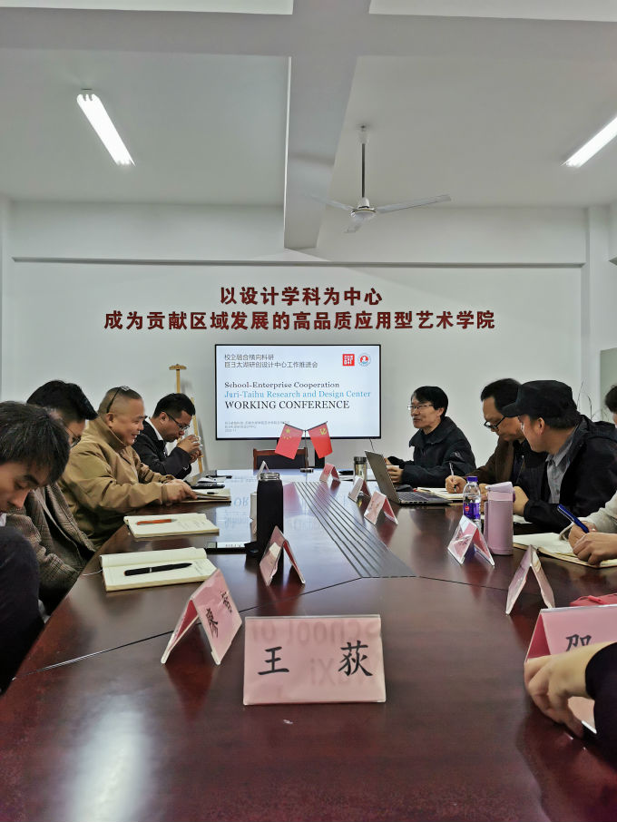 本次会议以充分发挥校企双方优势,发挥太湖学院艺术学院设计教学为社会、行业、企业服务的功能,共建校内设计中心;构建长期稳定的、多层次人员组成的、可持续拓展的校企合作的队伍;委托方提供适应学校教学、人才培养、学校建设需求相匹配的工作任务,以求学校、学生、企业共同发展进步为任务目标,围绕巨日装备科技与无锡太湖学院艺术学院校企合作、深度融合,共同构建研发创新设计中心平台展开。首先,艺术学院张秋平院长对企业方的到了表示热烈欢迎,对企业支持地方高等教育、提供校企合作平台的举措表示衷心感谢,艺术学院全体师生一定会全心全意、全力以赴,在校企合作中发挥全部的能量。