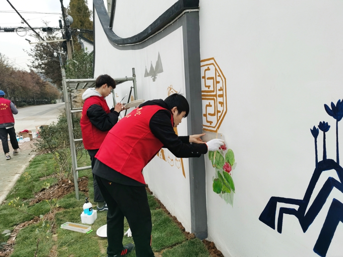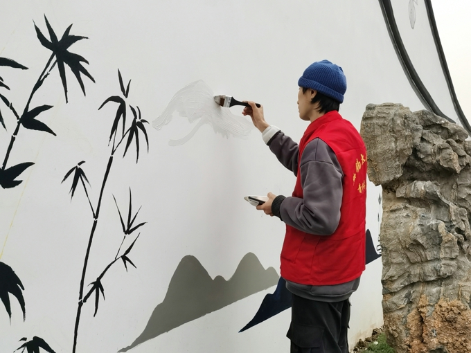 11月28日下午,无锡太湖学院志愿者走进滨湖区荣巷街道新峰社区丁巷,开展主题墙绘志愿者服务活动,助力美丽乡村建设、做浓党建文化氛围。此次参加主题墙绘活动的志愿者是来自于媒体1702的张建强、媒体1701的许远、环艺1802的俞浩哲、媒体1702的李皓东。