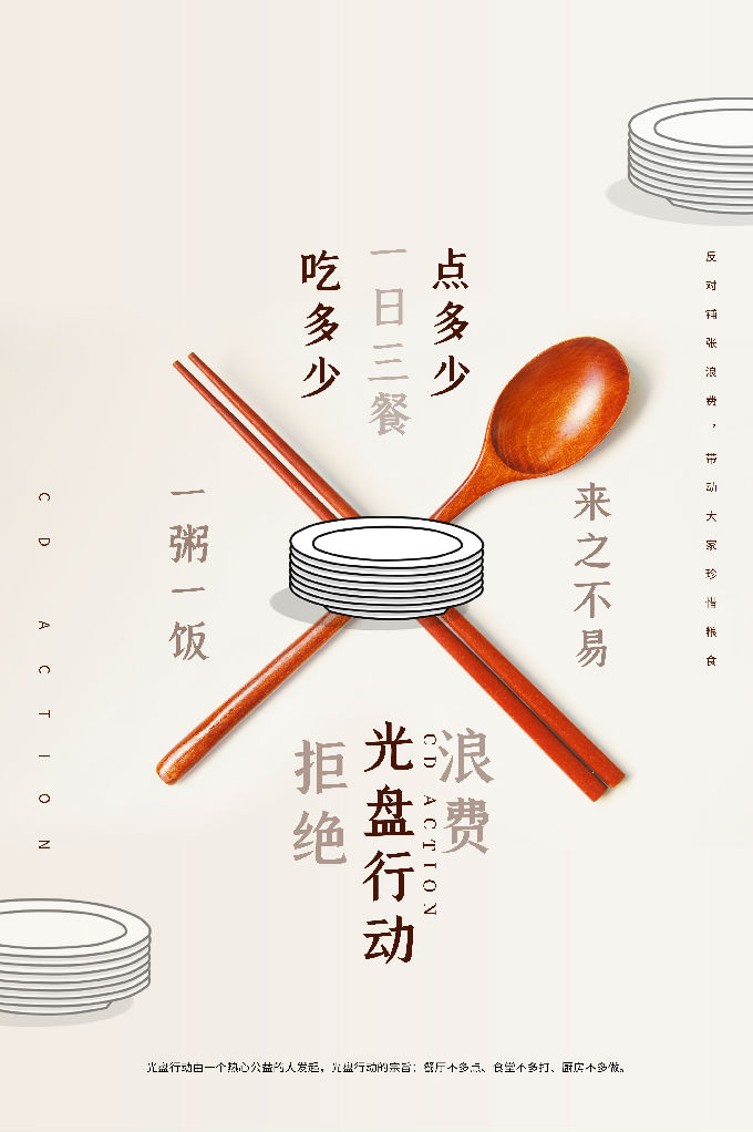 此次活动主要是围绕“践行光盘·文明用餐”的主题,开展海报设计比赛。艺术学院内外张贴了宣传海报和宣传标语,并主动向师生宣传"新食尚"引领节约,携手文明,告别陋习,并主动作为、率先垂范,自觉肩负起倡导勤俭节约好习惯的责任和使命,带头发扬艰苦朴素、艰苦奋斗的优良作风,赢得了学生的赞誉。此次活动受到同学们的积极响应,共收到50份海报,通过对海报进行评选,最终评审出一等奖1名,二等奖5名,三等奖10名,在学院进行宣传展示。