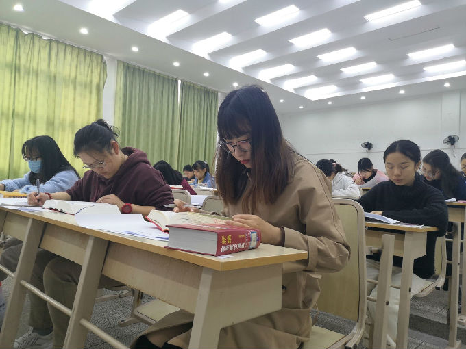 活动伊始,监考老师开始宣读考试注意事项,同学们都认真地聆听着。注意事项宣读完毕后,同学们快速进入状态,精力充沛、信心满满,考场里回响着刷刷地翻字典声。在考试过程中,同学们都十分专注,有的神情放松,胸有成竹;有的眉头紧锁,仔细推敲;有的小心翼翼,下笔慎重......同学们坚定的眼神中充满了力量,丝毫没有懈怠。