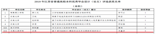 2020年学院优秀毕业设计获突破,在宋鑫宏老师指导下,我院学生的毕业论文也获得了极大的好评,我院宋鑫宏老师指导的毕业设计获得“江苏省普通高校本科优秀毕业设计(论文)”三等奖。