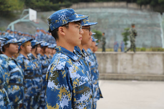 看军训场上,秋风习习的校园和英姿飒爽的蓝灰迷彩军装相互辉映,教官们飒爽的英姿、严谨的作风、严明的纪律、吃苦耐劳的精神影响到了同学们,同学们口令铿锵,面庞坚毅,衣衫浸透....不容置疑,军训是很苦很累,但这是一种人生体验,战胜自我、锻炼意志的机会。