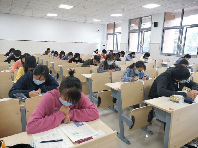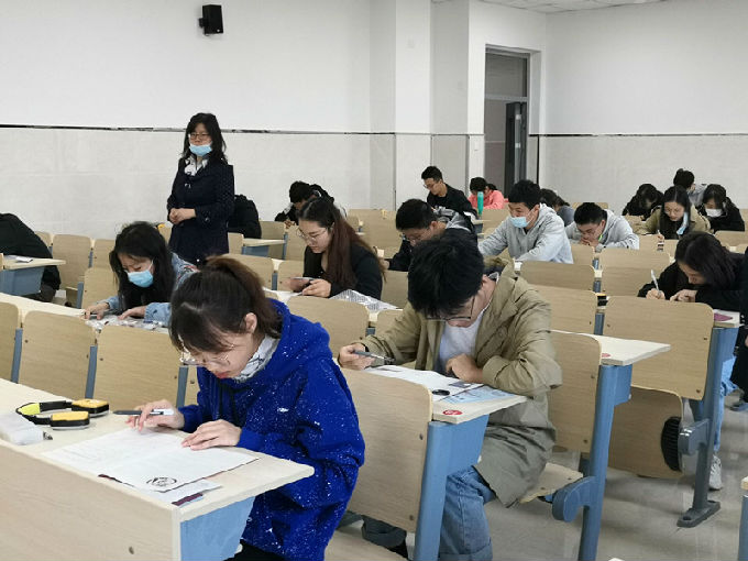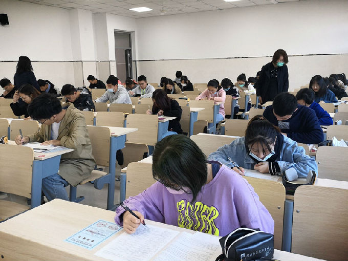 外国语学院院长包通法、副院长吴旻昊也来到比赛现场,耐心地提醒同学们进入考场的注意事项。参赛选手们蓄势待发、精神饱满地进入到考场,由于疫情防控工作还在进行中,同学们都自觉戴上了口罩。监考老师们早早进入到考场中帮助同学们调试耳机,并把比赛规则详细地写到了黑板上以方便同学们观看与遵守。同学们全神贯注地答题。相信经过几个月的精心准备以及老师和同学们的帮助,同学们都胸有成竹,相信可以取得不错的成绩。