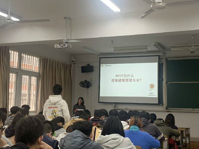 本次讲座的主题是“大学生活与职业选择”,吴老师从大家为什么选择土木工程这个专业开始谈起,详细的介绍了从应届生到项目经理的发展历程,同学们积极响应,热烈的讨论了当初选择土木工程专业和工程管理专业的原因,现场气氛热烈,吴老师充分的调动了学生们的活动积极性。随后,吴筱秋老师又提出什么是建筑这一论题,再次引发学生们的积极讨论,由此,进一步引出建筑是怎么来的以及建设项目一般工作流程等话题,让学生们深刻的了解到本专业的发展历程,加强了学生们对本专业的认同感,增强了就业信心。