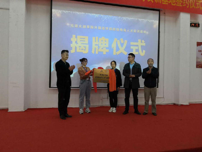 无锡太湖学院和苏州优贸网络科技有限公司双方代表一起揭牌,开启校企战略合作项目建设的新篇章。