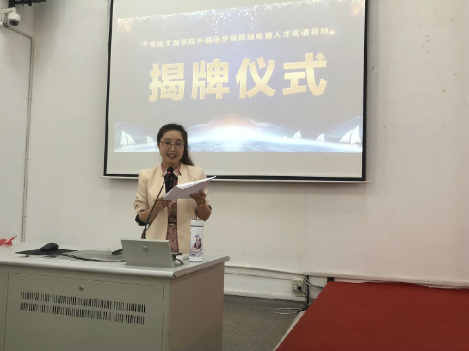 10月14日,无锡太湖学院外国语学院与阿里巴巴旗下苏州优贸网络科技有限公司顺利举行外国语学院跨境电商人才实训基地揭牌仪式,校企以此增进互相了解,加强互惠合作。此次会议由姬薇老师主持,无锡太湖学院副校长陈鹏飞、外国语学院院长包通法、常务副院长肖辉、副院长吴旻昊、党总支副书记俞昊波、阿里巴巴国际事业部无锡区域负责人梅平、苏州优贸网络科技有限公司总经理谢明出席,专业英语骨干教师及外国语学院2017级、2018级全体学生共同参加。