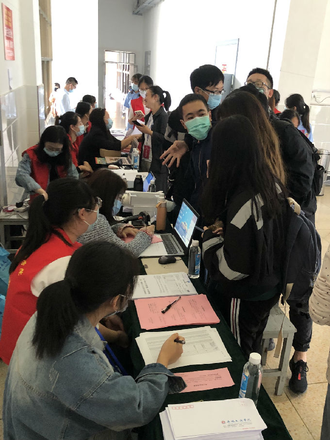 9月19日至9月20日,健康与护理学院又迎来新一届莘莘学子,疫情中沉寂了数月之久的校园终于迎来了她的新一批萌娃们,校园内到处散发着青春的活力和朝气,新生们的眼里也充满了对大学生活的期望与幻想,他们的一举一动都展现着青年人的的激情与昂扬。当然,健康与护理学院的学长学姐也是如此,这两天里,他们身穿红色马甲和蓝色志愿者服装,穿梭在校园的各个角落,带领新生报道、办理手续、入住宿舍、领取物资等各项工作,不辞辛劳,确保新生入学工作圆满完成。