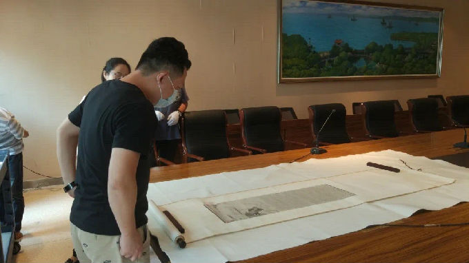 韩晶赴博物院观摩古画