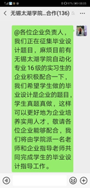 依托于江苏省物联网应用技术重点建设实验室平台,已建立校企合作联合实验室;江苏省大学生机器人培训基地;省级信息技术实践教学中心;100多家以上企业合作平台,多家校外实训基地,实习生供不应求。图2为企业实习需求信息和老师、学生在实习单位汉和航空技术有限公司。
