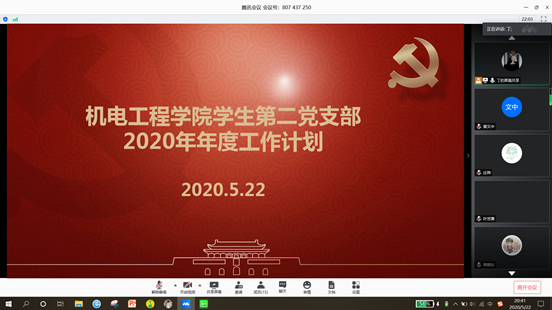 为贯彻落实《中共无锡太湖学院委员会2020年工作要点》,以及学院党总支对于学院本年度党建工作的规划,5月22日,机电工程学院学生第二党支部召开了线上支部党员大会,对本年度支部党建工作进行了部署,支部全体党员参加了会议。