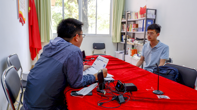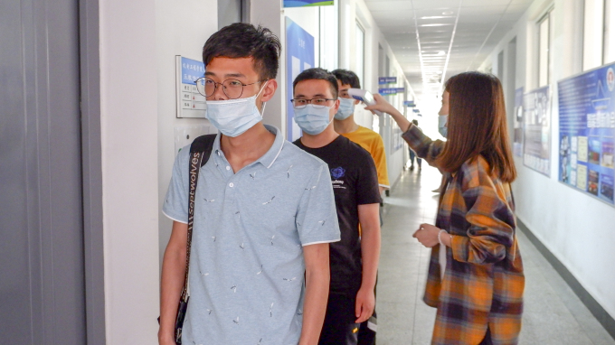 为做好疫情防护,我院要求来面试的学生做好自我防护工作,务必戴好口罩参加面试,并在指定位置排队等候,由学院老师进行测温登记。