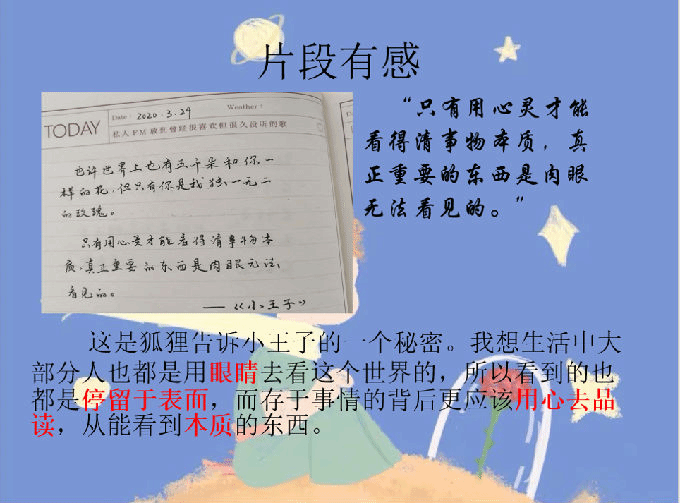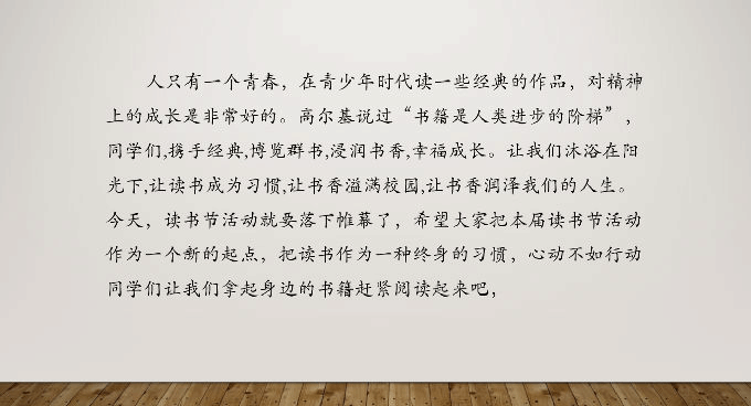 活动的最后,有14位同学推荐的作品脱颖而出,这些优秀作品通过同学们细致的描述,认真的笔记,清脆悦耳的朗读,我们仿佛也被吸入了书中,去感受书中人物的感受,经历他们的经历。通过此次活动,不仅开拓了视野,也让更多同学意识到读书的趣味,享受读书的时光,营造了良好的读书氛围,在读书的过程中陶冶性情,增长才干,感悟人生的真谛。