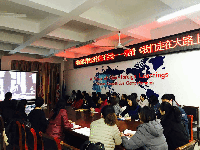 12月17日中午12点,外国语学院党总支组织各教师、教工、学生党员及预备党员集中观看了《我们走在大路上》专题片第一集、第二集。