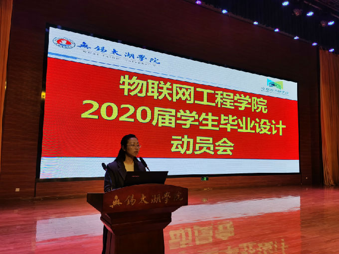 12月4日下午,物联网工程学院在工科实验大楼一楼报告厅召开2020届本科毕业设计(论文)动员大会。会议由李莎副院长主持,院长惠晶、副院长方宁生、各系主任、毕业设计指导老师、大四辅导员及2016级物联网工程学院全体学生参加了此次会议。