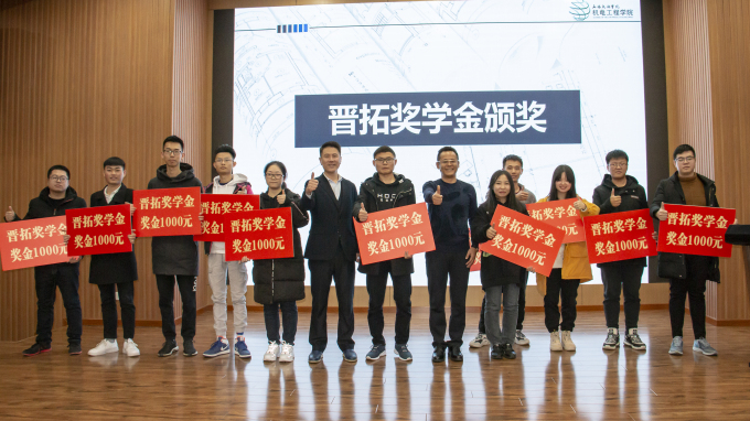 大会尾声,晋拓集团董事长张东和无锡分公司总经理侯强向获奖的27名学生颁发晋拓奖学金。张东致辞,他分享了自身三十多年的学习、工作、创业生涯,鼓励学生要“干一行,爱一行,”而不是“爱一行,干一行”。围绕“专业、专注、专心”向学生分享自己的成功经验和处事态度,并激励学生努力学习,勇于实践,开拓创新。