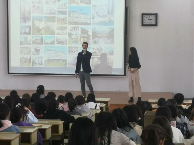 紧接着,Alice用几组她在世界各地游览留下的照片与同学们互动,并赠送笔记本,小书包和保温杯等小礼物。由同学的提问引出了国家间的文化差异问题,中国人应该树立本国文化自信,尊重他国文化差异。