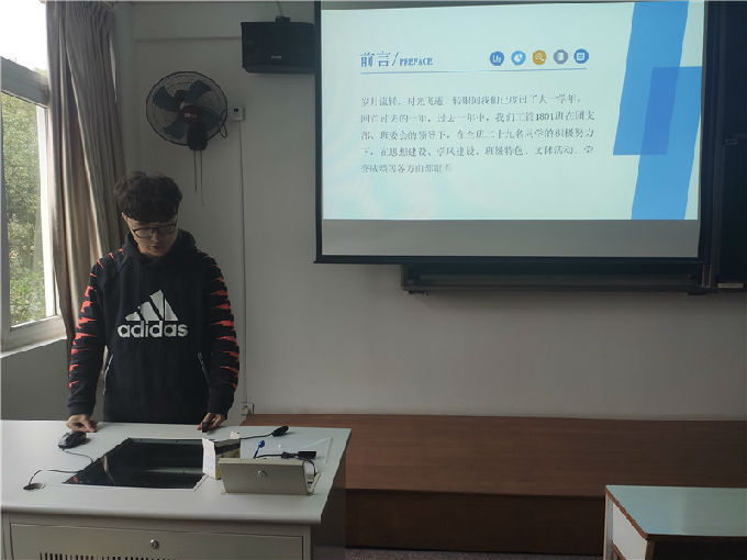 会议伊始,参评班级代表依次上台进行宣讲,通过PPT、视频,演讲等多种形式,分别从班级概况、学风建设、班级特色、获奖情况及未来展望等几个方面进行汇报,表现了各班级的精神风貌以及建设成果,赢得了评委团队的一致好评。