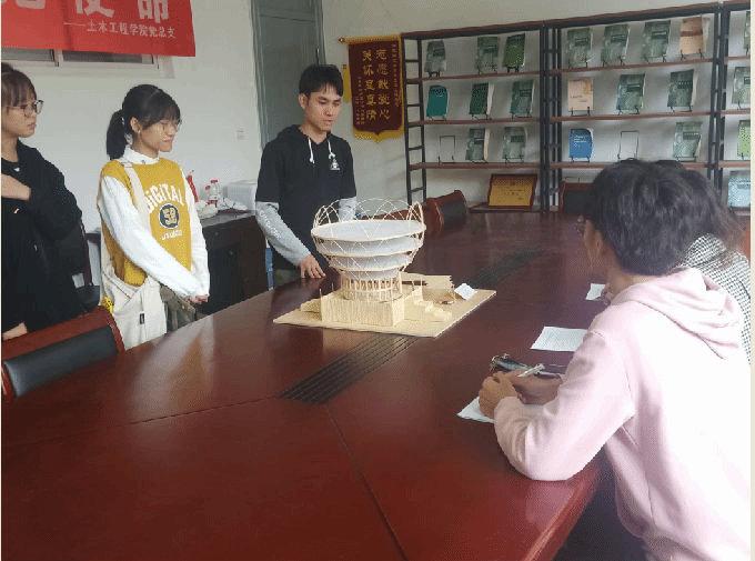 为进一步加强学院学风建设,丰富校园文化生活,营造浓厚的科技竞赛氛围,培养学生的学习兴趣。2019年11月6日,土木工程学院举行跨校结构模型大赛学院选拔赛,陶莉老师和翟文清老师担任此次比赛的评委。