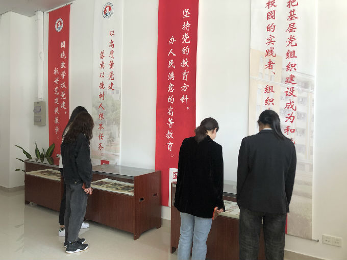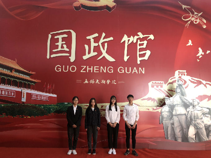 无锡太湖学院国政馆内部融入了大量党建元素,以时间为轴,展示了党内政治生活发展脉络,学生党员们满怀激动的心情踏进了无锡太湖学院国政馆。首先映入眼帘的是新中国成立70周年成果展览区,一幅幅照片,一件件实物,充分展示了新中国成立70年来取得的辉煌成就,丰富的陈列材料将历史重新还原在眼前。透过玻璃橱窗,党员们被一幅幅珍藏的照片所吸引,停留许久之后又被另一件展物所吸引,一边交流和感慨新中国所取得的成就,一边感受着党内政治生活的发展脉络,一边惊叹于党内生活的历史之厚重。