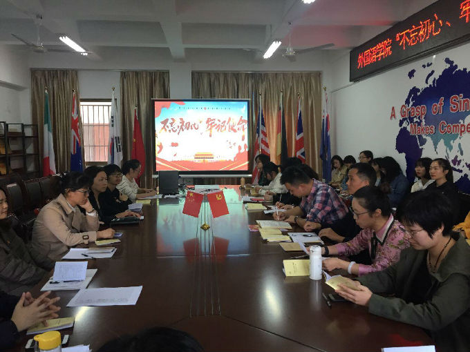 10月17日中午,外国语学院教师党支部、教工党支部、学生党支部在二楼会议室召开了“不忘初心、牢记使命”主题教育第二次集中学习研讨会。会议议程共分为四个部分,学习研讨会由党总支副书记俞昊波主持,全体党员及预备党员均到会参加。