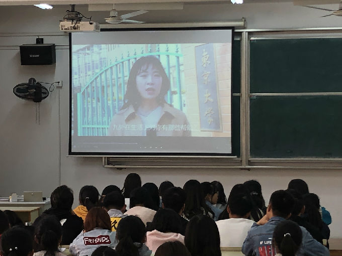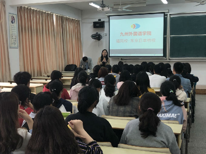 然后,马院长在讲座中详解了“3+1”项目以及赴日留学后的三条出路:考名校研究生、在日本找工作、回国就业。还向同学们分享了在日本九州外国语学院学习的优秀同学的学习历程及获奖记录视频,通过这些记录可以发现在日本九州外国语学院学习的同学考研的几率比本土学生更高!这也深刻地显示出了九州外国语学院的优秀教学能力和光明前景,令同学们心生向往。其中,优秀学姐代表解雨晴详细讲述了她来到日本留学的感受和收获,并对九州外国语学院表达了深刻的感谢。学长学姐们也希望同学们能够加油,努力学习!