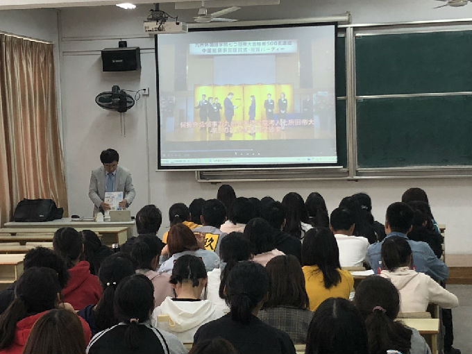 为了让2019级日语专业新生了解日语学习、日本文化,以及让同学们更好地规划自己的大学生活,10月18日下午,外国语学院成功召开赴日本九州外国语学院考研宣讲会。此次宣讲会由日本九州外国语学院马越雪夫院长主讲,日语系主任许珏芳、辅导员姚靓雯老师及2019级日语专业全体学生共同参加。此次讲座受到了同学们的热烈欢迎。