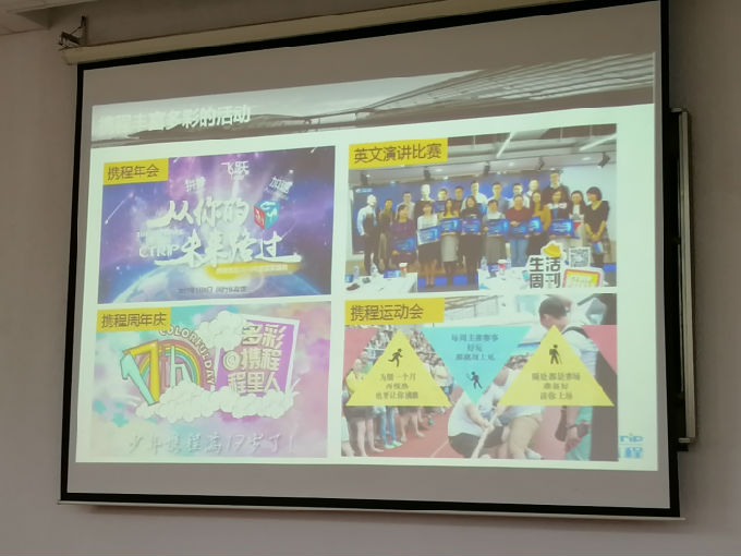本次携程集团主要招聘海外订单岗位,负责人以幽默的方式开场,与同学们很快熟络起来。他询问他们:对未来工作有什么方面的期待。有同学回答“工资、福利”,有同学回答“假期”,还有的同学回答“工作环境”。负责人就同学们的期待点详细介绍了携程能提供什么。此外,负责人还给同学们简述了携程使命——让旅行更幸福。他们采取的第一措施即让员工更幸福。丰富的团建活动也让同学们眼前一亮,包括携程年会、英文演讲比赛、携程周年庆、携程运动会等。携程的工作环境让现场的同学们兴致大涨。
