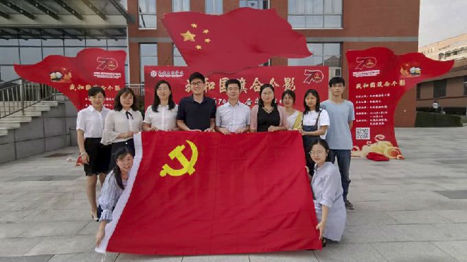 党支部成员还到“我和国旗合个影”的展架前合影留念,以此表达对伟大祖国的美好祝愿。