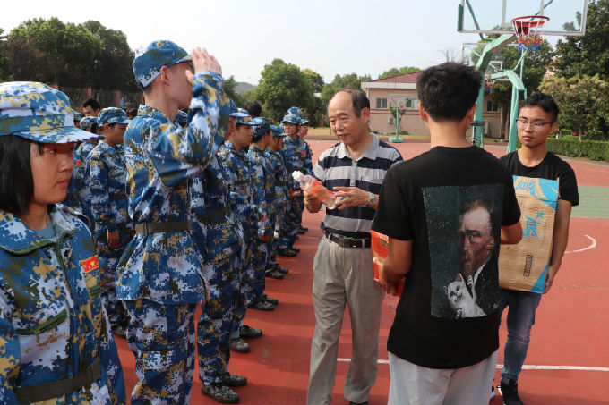院领导们不仅带来了祝福与鼓励,还带来了补充能量的饮料。领导们将饮料依次的分发给辛苦的教官和可爱的新生们,礼轻情意重,小小的礼物是学院对军训新生最美好的期许与关爱。院领导们亲切地问候新生,询问是否习惯新环境,学习、生活上以及军训时期是否遇上什么问题,有问题要及时向老师反映。并且提醒新生们要注意休息、注意安全等。
